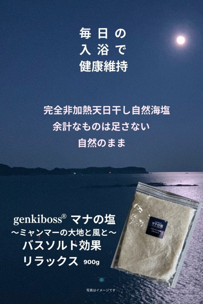 ・敏感肌の方や使い始めは、30g(カレースプーン約2杯)を目安に入れ、お塩の粒が溶けましたら入浴の合図です。